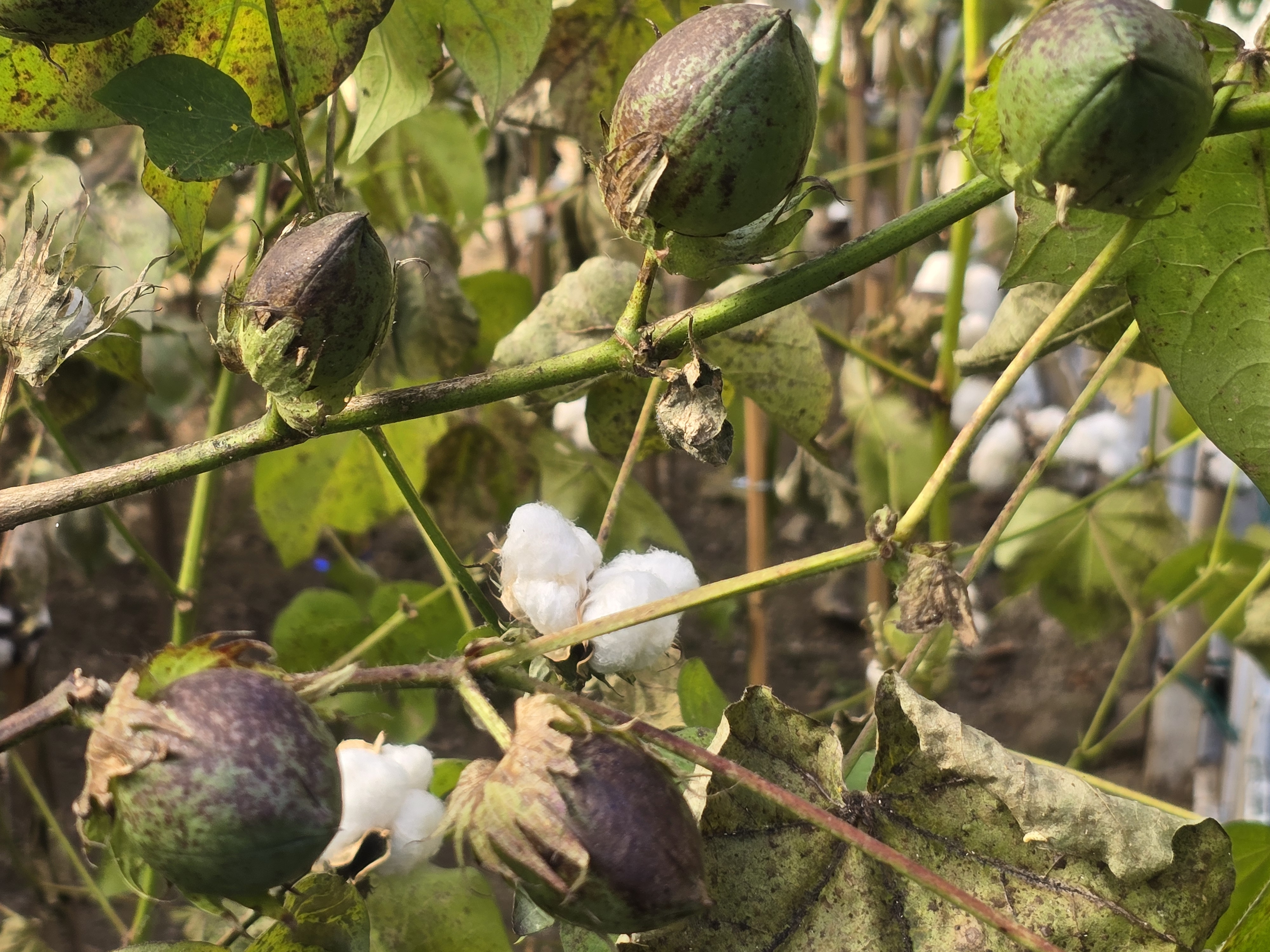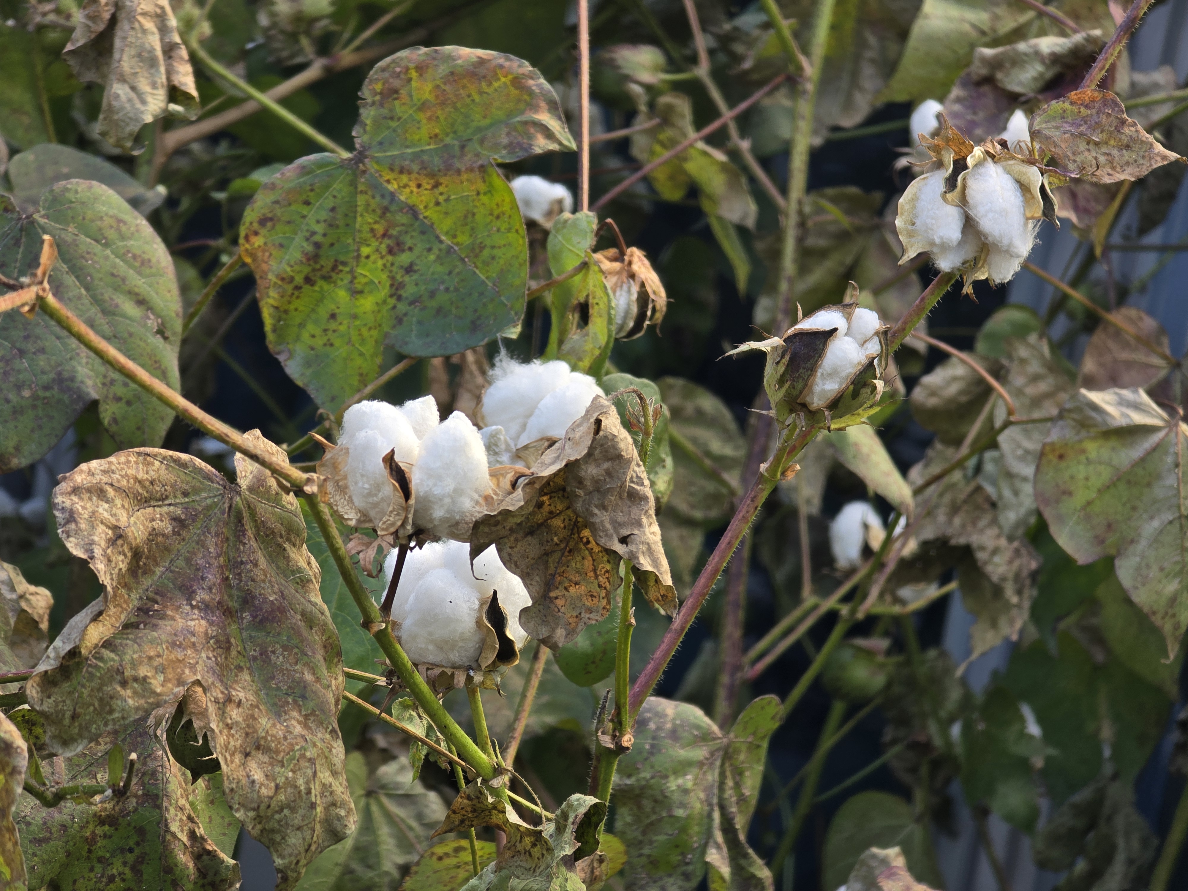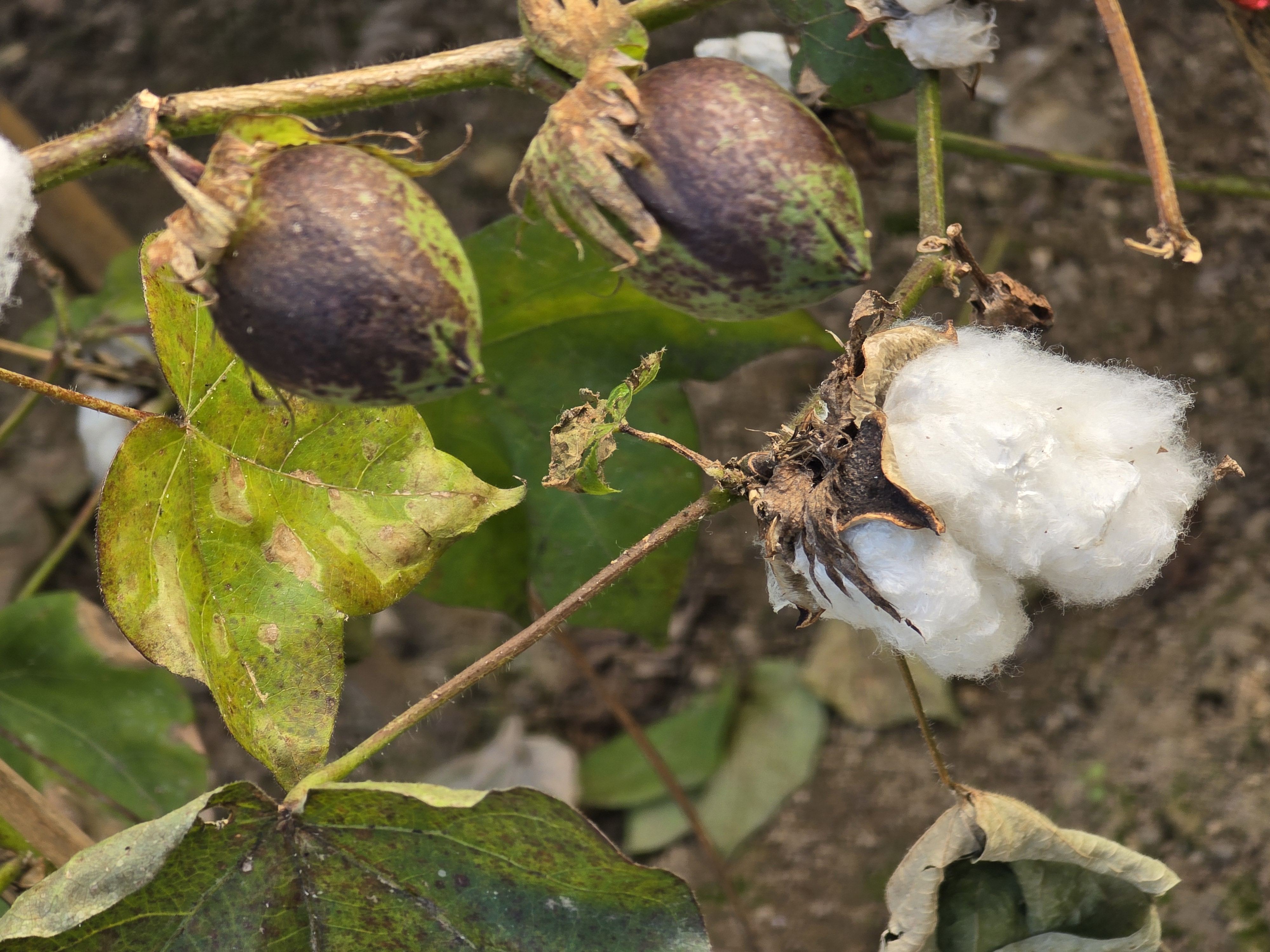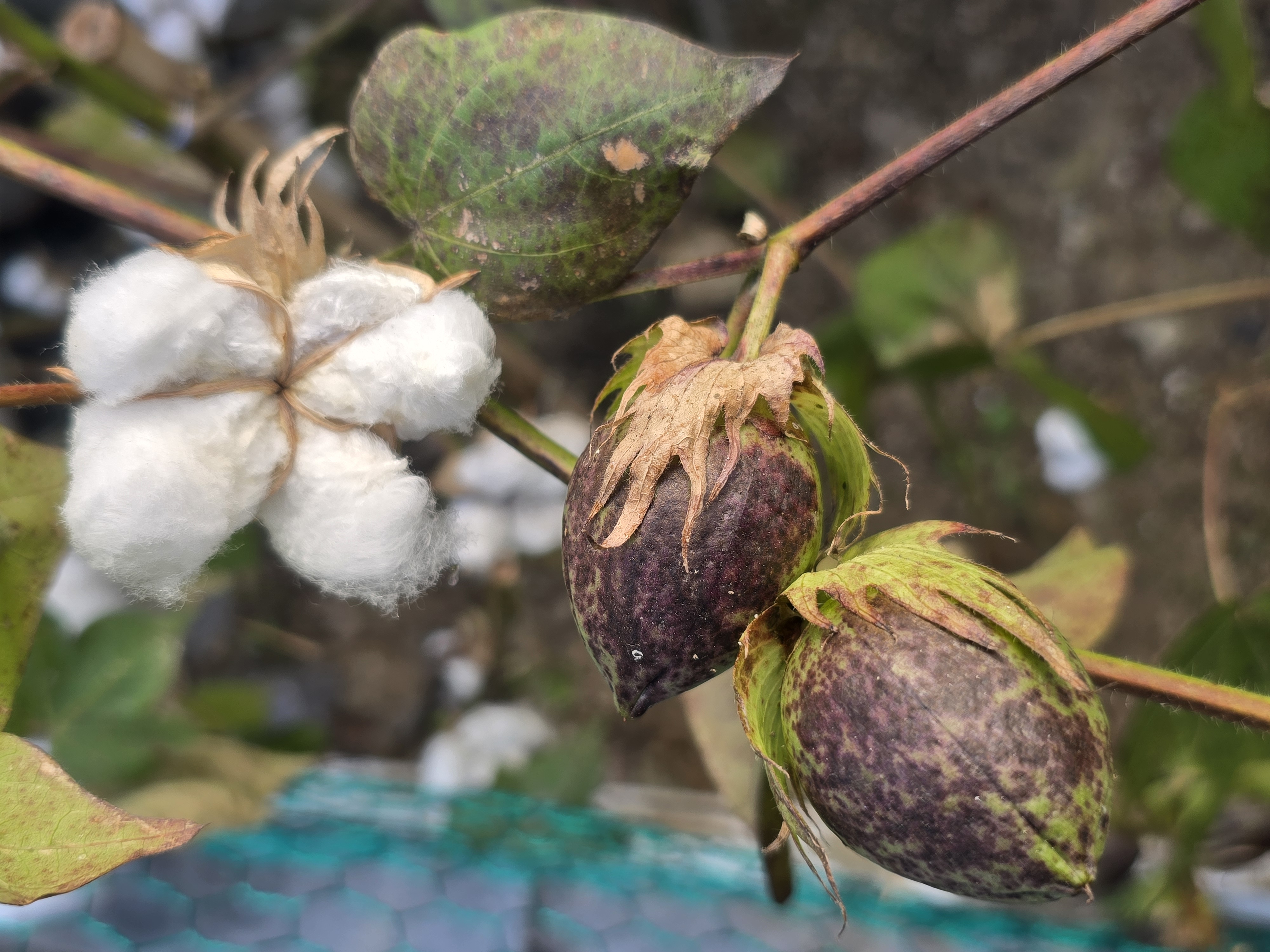 삭과로 목화다래 라고부르며 익으면3~4갈래로 갈라지며 씨를덮고있는 솜털(섬유)가 나옵니다./ 이윤수. 2025.11.10. 폰찍음.