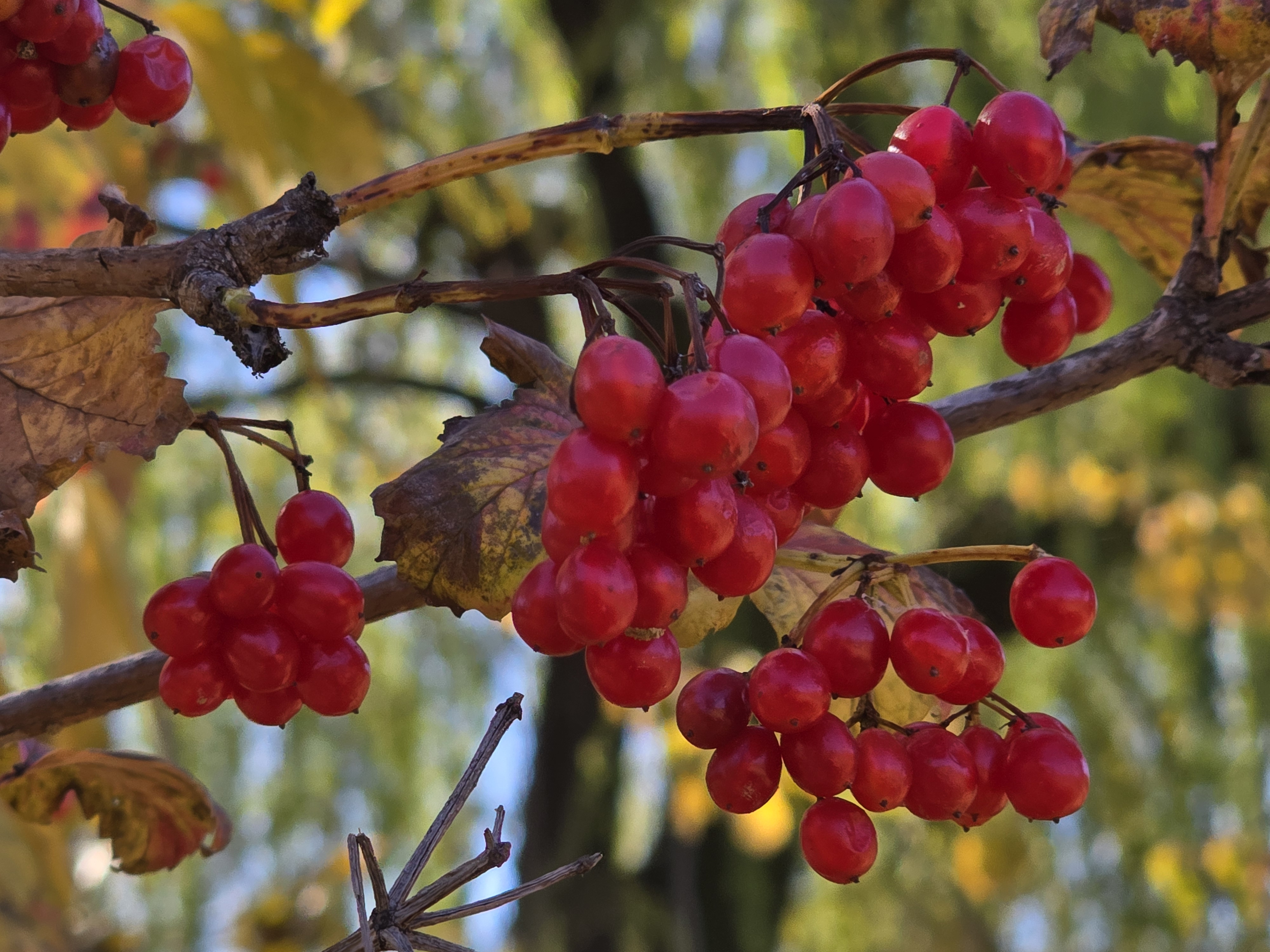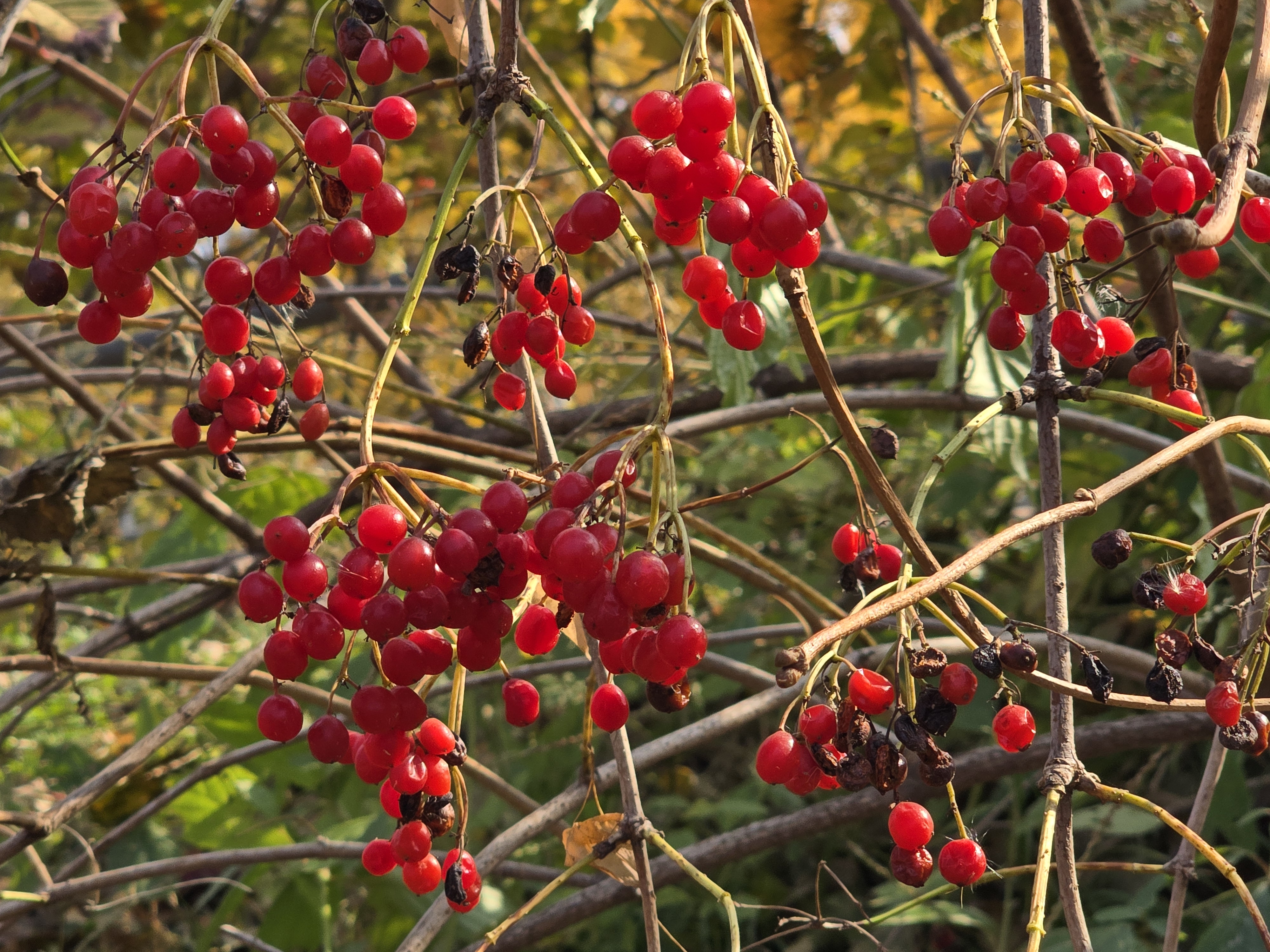 풍성하게 피며 열매는핵과이며 9월경에 둥글고 붉은색으로익어 겨우내 달려있습니다./ 이윤수. 2025,11. 중순. 폰찍음.